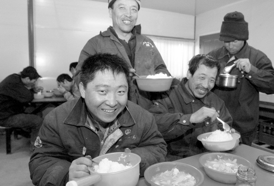 洛陽千島裝飾工程有限公司楊總從廣州帶回來的海鮮,做成海鮮燴餐與工人們一起分享。工人們歡快的吃著。