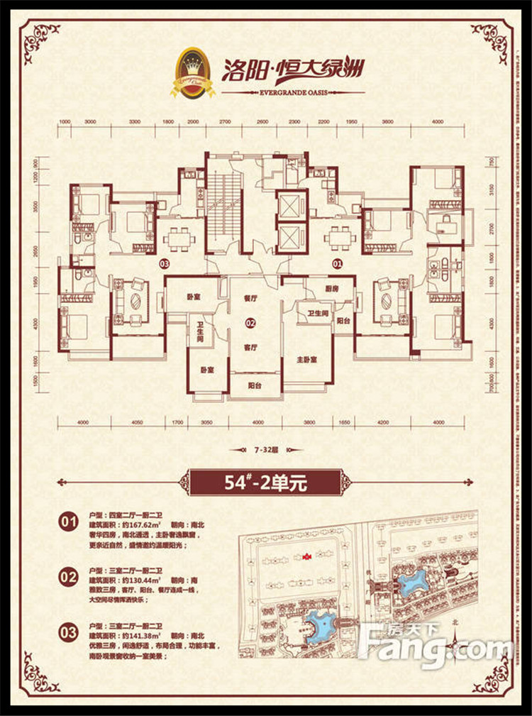 恒大綠洲項目位于洛陽市瀍河區(qū)洛陽市東出口,洛河以北、中州東路兩側(cè)、二廣高速以西,項目獨享洛河北岸3500多米河岸線,且處于洛陽市城市東西中軸線中州路東段,臨中州路街面長2000余米,有多路公交車直達。恒大綠洲全部項目占地面積約1338畝,規(guī)劃建筑面積近301萬平方米,居住單位2.06萬余戶,除居住建筑外,項目內(nèi)還配置了運動中心、綜合樓(會所)、幼兒園、小學(xué)、中學(xué)、商業(yè)配套、五星級酒店等,整個項目建成后,將形成約6.6萬人的居住規(guī)模。全部項目累計總投資超過100億元人民幣,預(yù)計上交稅收超過15億元人民幣。