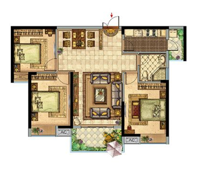 • 3室2廳1衛(wèi)1廚105.32㎡