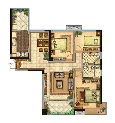 • 3室2廳1衛(wèi)1廚120.25㎡