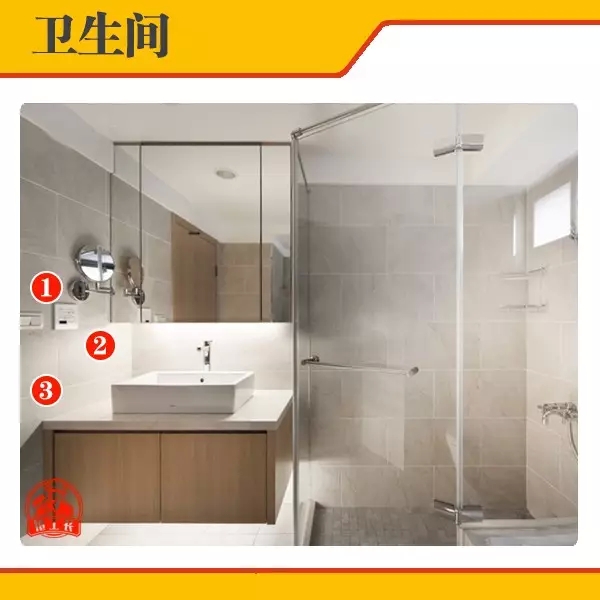 衛(wèi)生間是水氣較多的地方,因此,嚴(yán)禁在衛(wèi)生間內(nèi)的潮濕處如淋浴區(qū)或澡盆附近設(shè)置電源插座,其它區(qū)域設(shè)置的電源插座應(yīng)采用防濺式。