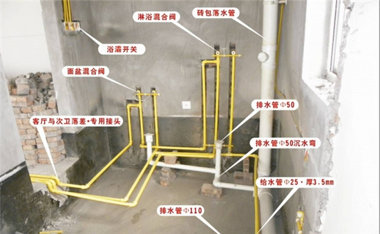 水管開槽,一般是先彈線,再開槽。管路開槽按要求必須是平行線與垂直線(如有水電施工圖的對照施工圖更好)。須平行走線的管路一律控制在60-90厘米高(從地面算起),有水龍頭的管路必須垂直。深度控制在4厘米。線槽開好后施工負(fù)責(zé)人記好開槽管路尺寸、位置。方便以后潔具安裝時知道管路的位置。