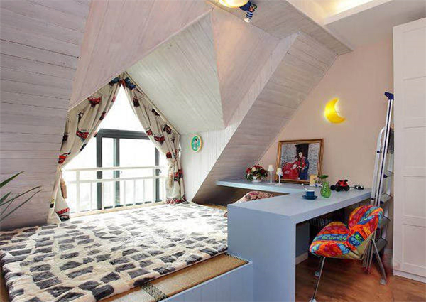 閣樓在裝飾成臥室的時(shí)候,在還沒(méi)有睡覺(jué)的時(shí)候透過(guò)美麗的窗戶還能夠看到閃爍的滿天繁星,帶著美景入睡。
