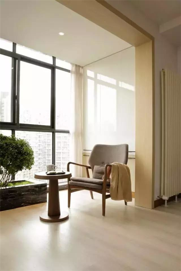 2、可以在陽(yáng)臺(tái)做一個(gè)地臺(tái),放張休閑桌椅,或者茶幾,這樣就可以改造成一個(gè)小茶室,讓你在閑暇之后休閑一下。