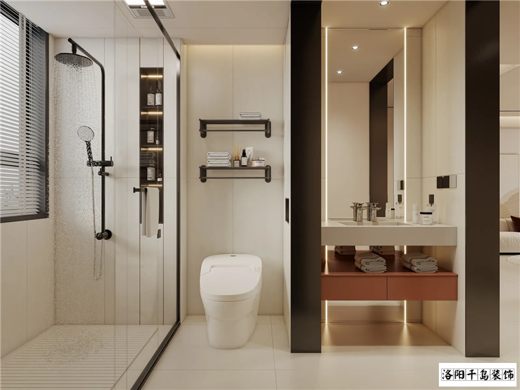 衛(wèi)生間采用干濕分離的設(shè)計,懸空浴浴室柜,墻排下水,智能馬桶,獨立淋浴房!
