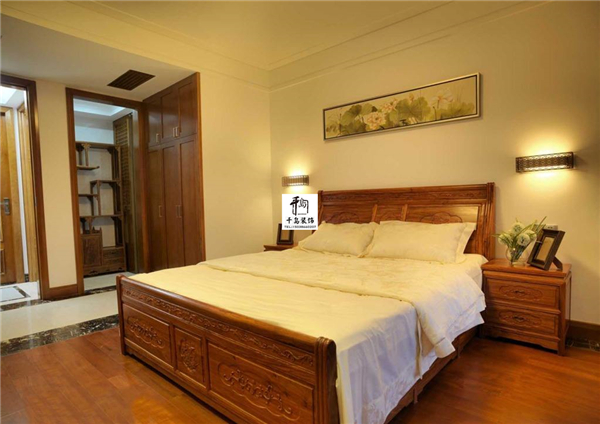 掛畫下沿離地至少140cm。掛畫以床為基準(zhǔn),離兩側(cè)的床邊最好各30cm左右。