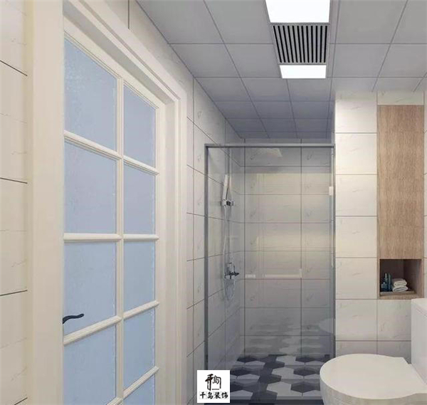 淋浴間和馬桶區(qū),用了玻璃門進(jìn)行隔斷,干濕分離也處理得蠻到位的。墻面也被充分利用起來(lái),做了壁龕設(shè)計(jì),收納點(diǎn)小東西,很方便。