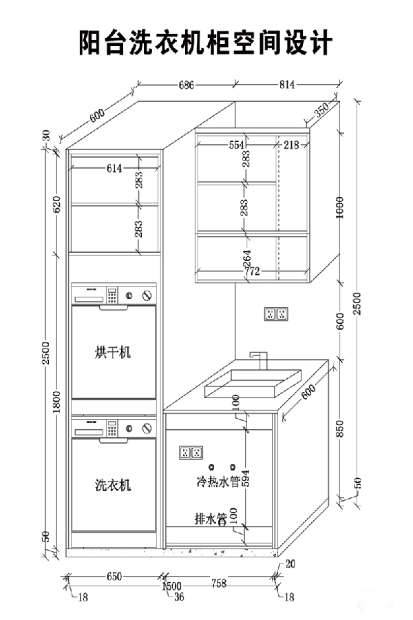 陽臺(tái)定制洗烘一體柜尺寸圖