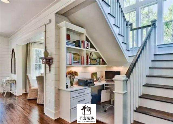 樓梯間當(dāng)然不能只是存儲雜物,一張不太大的書桌和一把座椅,簡單的擺放就能組成一個實用的小書房。