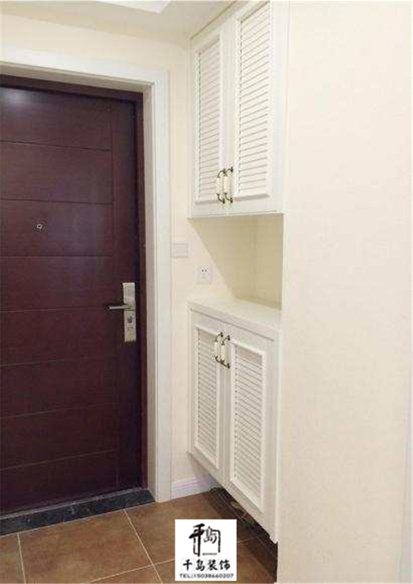 玄關的鞋柜是專門定做的,上面的鞋柜做到了頂部,打破了很多人對鞋柜的設想,同時把鞋柜下面留空,非常方便換鞋。
